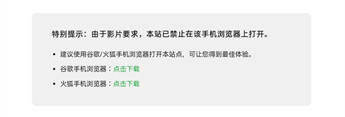 提示内容请自行更改,浏览器下载地址自行替换,提示页面样式如下: