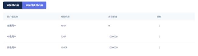 2、新建普通用户组的时候给最低分辨率的用户组积分设置0,其它分辨率设置1000000积分;即480为0、720和1080为1000000积分。