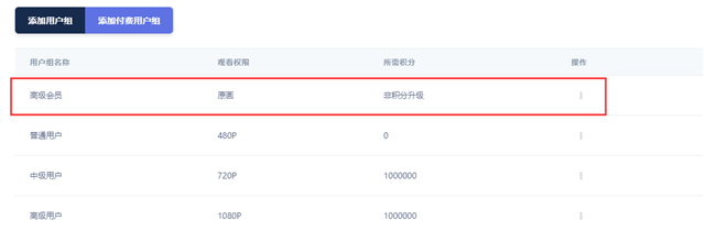点击EFV后台左侧 ⇒ 用户相关 ⇒ 用户组设置,设置一个付费用户组,观看权限选择原画,图片参考: