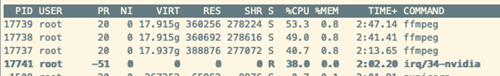 转码设置:同时转码480P,720P,1080P,码率设置为500,1000,2000,并且同时添加图片水印和跑马灯。使用GPU转码。