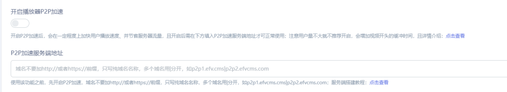 注意节点域名不要加http://或者https://前缀,只写纯域名名称,多个域名用|分开,如p2p1.efvcms.cms|p2p2.efvcms.com。