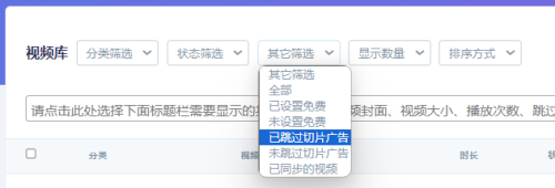 前往视频管理,先去标题栏把是否跳过切片广告调出来,方便标题栏查看。