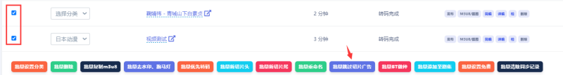 前往程序后台 ⇒ 进入视频管理,批量选择不想生效的视频,点击下方批量跳过切片广告,进行关闭或开启即可。