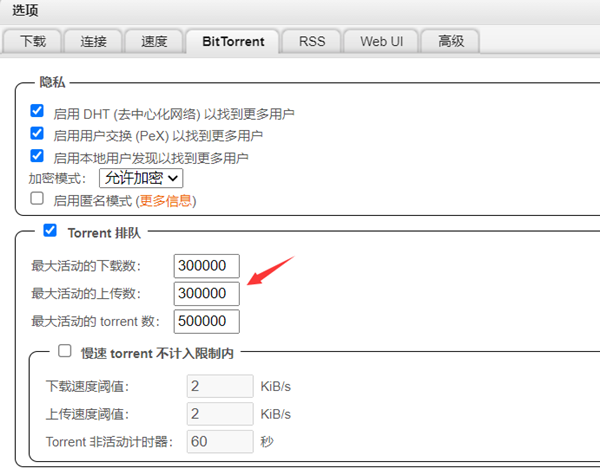安装完成,并将该工具设置成中文后,再进入设置更改下做种上传信息,如下: