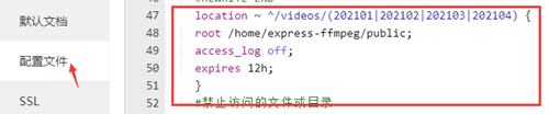 该配置文件达到的效果就是,202101、202102等日期的切片从老的切片文件夹/home/express-ffmpeg读取,不在上面代码内的日期从新的转码文件夹读取,这时候就等于播放域名不变,切片也不影响播放。